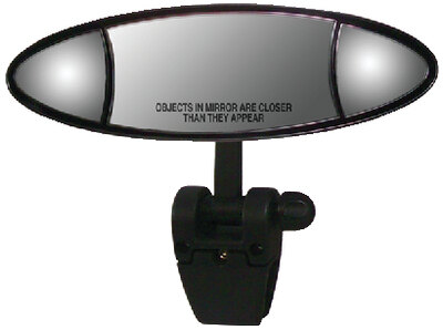 A multi-lens universal boating mirror. It features one 3-1/4\" x 6\" convex stationary lens in the center and two adjustable 2-1/2\" x 2-1/2\" flat...